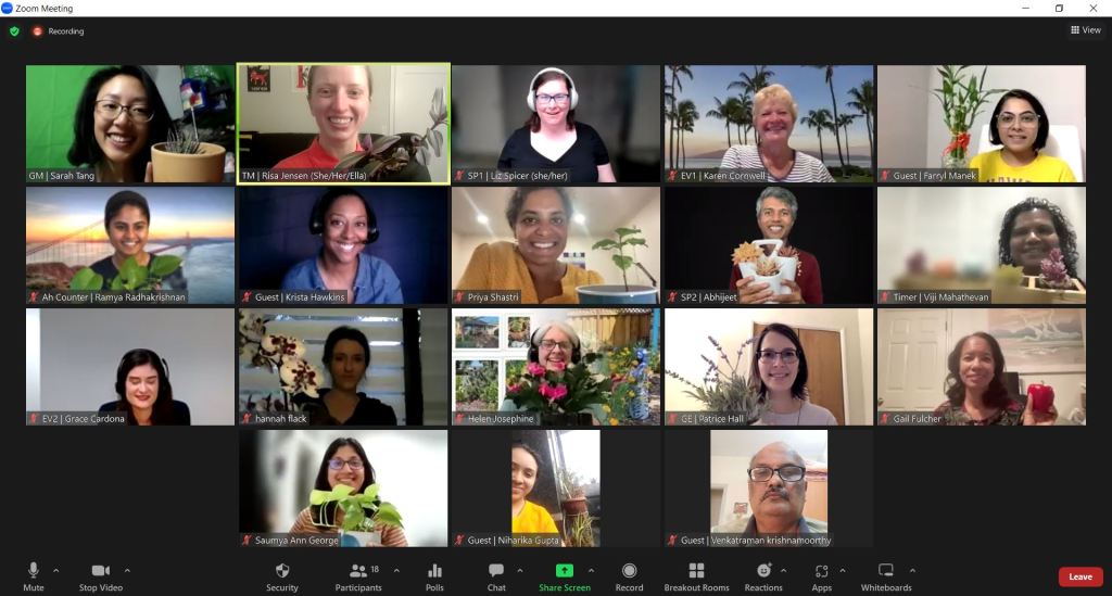 We had a succulent meeting full of plant friends and gardening thoughts led by Toastmaster Risa. Priya presented on Melanie Perkins, CEO of Canva — the reason why we have nice flyers. Liz gave a touching tribute to her mentors and role models. Abhijeet asked if himself and us “are you a horse of a long race?” (Yes!) Table Topics Master Saumya encouraged our guests to share their gardening exploits. We concluded with feedback from Karen, Grace and our General Evaluator Patrice that encouraged us to keep growing!