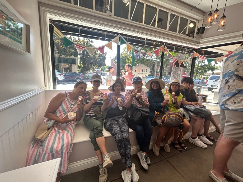 However, our group was not quite as heat tolerant. With the sun bearing down on us, we headed downtown for ice cream at Lottie’s creamery where business was booming. Dessert came before dinner, of course. We walked a short block over for a delicious meal at Burma 2 — their tea salad and palata really hit the spot.