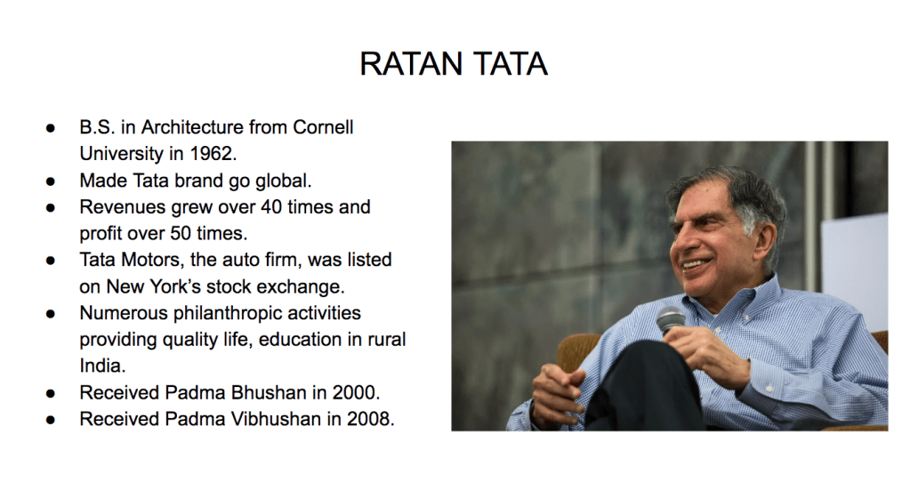Snehitha introduced a Leader Profile of Ratan Tata, the business leader who made Tata brand go global.ader Profile of Ratan Tata, the business leader who made Tata brand go global.