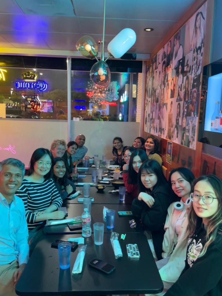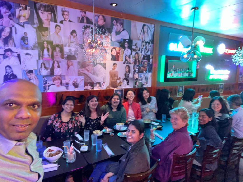 After our usual Wednesday meeting, some of us attending in-person opted for a late night Korean-fusion at Rice Junky. Thanks Jagan, for proposing the idea of a casual outing! Naina tried Korean food for the first time. Ramona brought a couple of friends. Jagan and Karen clinked soju drinks. And Sarah celebrated the night before her birthday. 😉