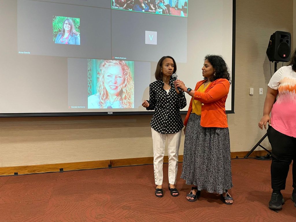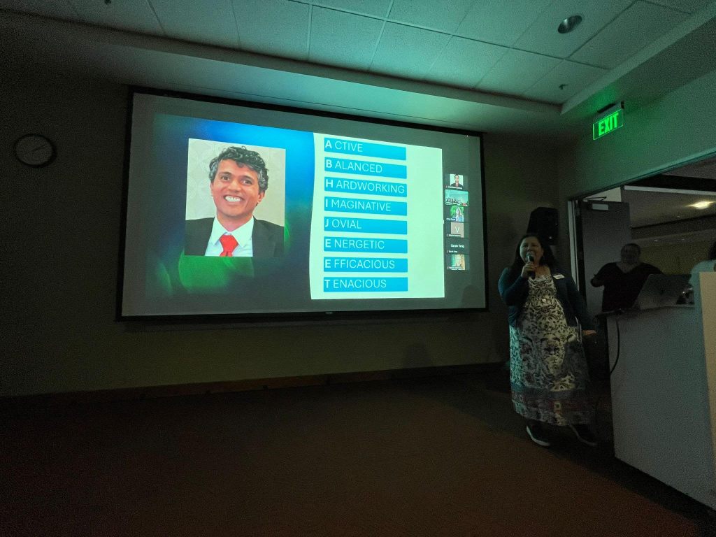And now…on to the roast >:) Leena kicked off the roast, Gail and Priya warmed up the middle with the trademark Abhi Hug, and Jagan was the closer. Thanks to Sarah the roast master, Team of Timers Kirti and Preetha, Zen Buddhist Yogi Heckler Jian, and last minute tech support Ramya and Priya.